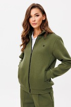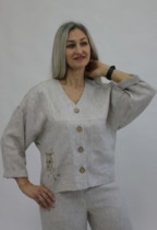 Вязаный жакет из вискозной пряжи с добавлением акрила, свободного силуэта на молнии переплетения гладь. По горловине отложной воротник. Длинный втачной рукав. По низу изделия и рукавов манжеты. По воротнику и манжетам ластичное переплетение.