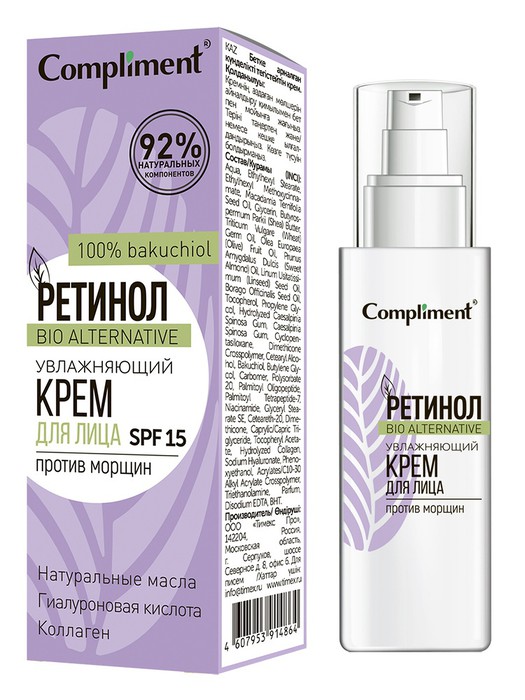 Омолаживающее действие био-ретинол — натуральный аналог ретинола, обладающий всеми его полезными свойствами. Оказывает мощное регенерирующее и омолаживающее действие. Стимулирует естественную выработку коллагена, что улучшает микрорельеф кожи, уменьшает видимость морщин и замедляет процессы старения. Благодаря антиоксидантным свойствам способствует выравниванию цвета кожи и уменьшает проявления пигментации.