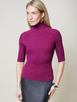Vilatte Водолазка тонкой вязки в рубчик из хлопка с нейлоном D34.198 пурпурный