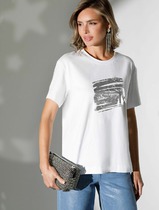 Футболка из хлопка станет основой для множества расслабленных базовых образов, а стильный рисунок добавит вашему повседневному гардеробу больше индивидуальности.