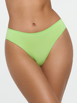 Трусы женские STRING со средней посадкой из однотонного трикотажного полотна. Спинка из отделочного трикотажного полотна "сетка" со средним швом. Талия обработана эластичной тесьмой плоским швом. Ножки по переду изделия обработаны эластичной тесьмой плоским швом.