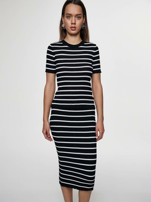 Юбка-midi в полоску в эластичном переплетении ластик LDK 2336Фактурное переплетение ластик со сменой полос, прилегающий силуэт и безупречная посадка по фигуре делают эту юбку особенной частью гардероба, которую вам захочется надевать как можно чаще. Модель изготовлена из тонкой шелковистой пряжи на основе вискозы. PREMIUM VISCOSE: вискоза премиального качества легкая, гладкая, с приятным матовым блеском. Вязаный трикотаж с вискозой приятно холодит, а небольшое количество полиэстра в составе помогает ей сохранять форму. Пряжа устойчива к разрывам, образованию катышек, усадке. · высокая посадка на талии· пояс с эластичной тесьмой· длина midi· прилегающий силуэт· гладкая и приятная к телу пряжа с вискозой· фактурное переплетение ластик со сменой полос· сохранение формы и цвета при соблюдении рекомендаций по уходу· лаконично, женственно и элегантно· создайте total-look, используя джемпер LDK 2335.