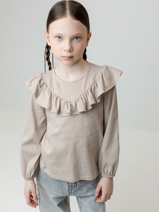 24.03 Crockid блузка для дев КР 302177/бежевый,гусиная лапка к625