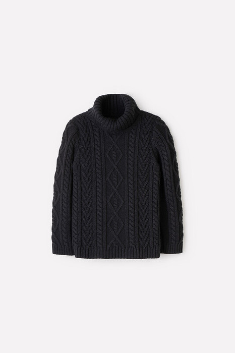 Теплый вязанный джемпер из полушерстяной пряжи в состав которой входит шерсть австралийского мериноса. У изделия высокий, эластичный воротник, переплетение косы.