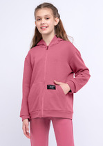 Удлинённый джемпер из петельчатого футера. Спущенные плечи и сборки по низу на рукавах придают свободный объём. Оригинальный принт выполнен из стойких текстильных гипоаллергенных красителей.