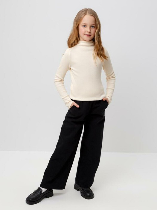 Базовая водолазка для девочки из эластичного трикотажа кашкорсе. Изделие имеет цельнокроенный воротник и длинные втачные рукава. Водолазка сохраняет цвет и форму после многократных стирок.