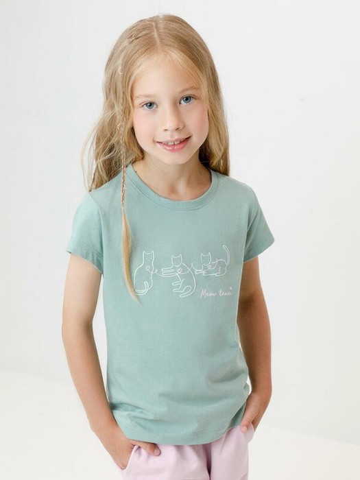 Футболка для девочки из высококачественного трикотажного полотна супрем. Оригинальный принт выполнен из стойких текстильных красителей. Изделие сохраняет цвет и форму после многократных стирок.