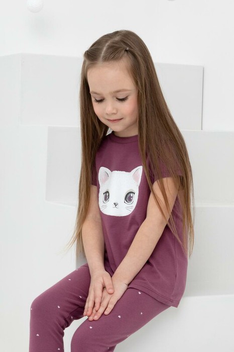 Футболка для девочки из высококачественного трикотажного полотна. Для удобства предусмотрена застежка на 2 кнопки в размерах 92 и 98. Оригинальный принт выполнен из стойких текстильных гипоаллергенных красителей.