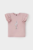 Футболка с кокеткой для девочки из высококачественного набивного трикотажного полотна. Оригинальная набивка выполнена из стойких текстильных красителей