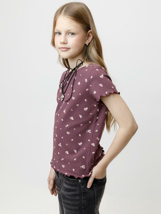 Футболка для девочки из эластичного трикотажа в рубчик. Оригинальный рисунок выполнен из стойких текстильных гипоаллергенных красителей. Изделие сохраняет цвет и форму после многократных стирок. Все трикотажные полотна производятся в соответствии с нормами швейцарского сертификата ЭкоТекс.