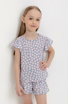Футболка для девочки из гладкого трикотажа, произведённого из высококачественного натурального хлопка. Застёгивается на спине на кнопки в размерах 92 и 98. Оригинальный принт выполнен из стойких текстильных гипоаллергенных красителей. Изделие сохраняет цвет и форму после многократных стирок. Все трикотажные полотна производятся в соответствии с нормами швейцарского сертификата ЭкоТекс.