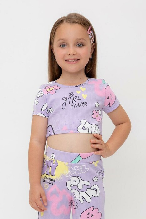 12.04 Crockid фуфайка (футболка)-топ для дев КР 302697/пастельно-лиловый,позити