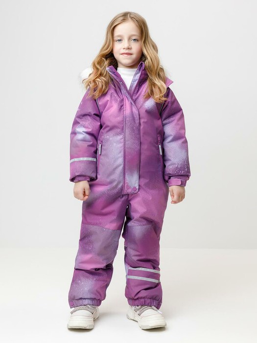 Зимний комбинезон для девочки с утеплителем Fellex®: 250 г/м2 . Выполнен из мембранной ткани с дополнительной тефлоновой обработкой, которая предохраняет изделие от загрязнений и отталкивает влагу. Подклад выполнен из 100% полиэстера Tricot. Комбинезон застёгивается на молнию и внешнюю планку на липучках и кнопках, предусмотрена защита подбородка. Съёмный капюшон имеет эластичную утяжку со стопперами и отстёгивающийся искусственный мех. Резинка по спинке обеспечивает лучшее прилегание. По бокам два кармана на молнии. Эластичные манжеты на рукавах регулируются по ширине с помощью липучки, по низу изделия - с помощью кнопки. Внутренняя противоснежная юбка защищает обувь от попадания снега и удерживает комбинезон в закреплённом положении, предусмотрены отстёгивающиеся штрипки. Во всех изделиях верхнего ассортимента для безопасности ребёнка предусмотрены светоотражающие элементы.