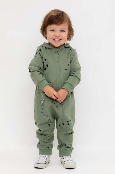 Комбинезон с капюшоном детский из мягкого петельчатого футера. Манжеты выполнены их эластичного трикотажа в рубчик. Застёжка на молнию с защитой шеи и подбородка. Оригинальная набивка выполнена из стойких текстильных гипоаллергенных красителей.