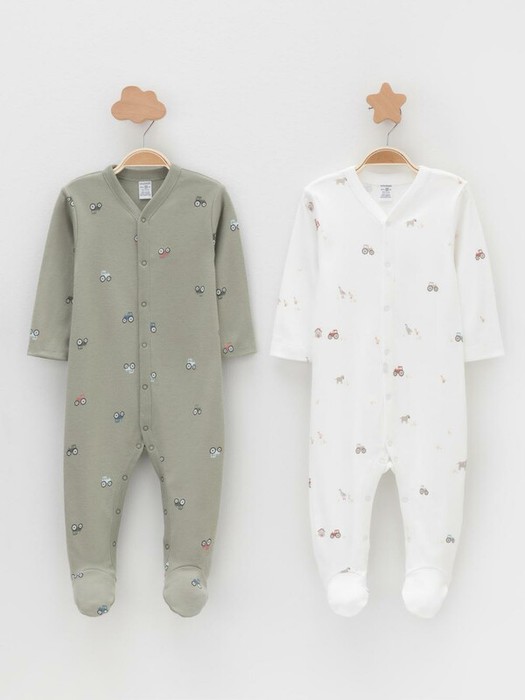 Комбинезоны для новорождённых из мягкого эластичного трикотажа интерлок, произведённого из натурального хлопка. В упаковке 2 штуки. Застёгиваются спереди на кнопки. В размере 56 на рукавах предусмотрены антицарапки, швы выполнены наружу. Оригинальная набивка выполнена из стойких гипоаллергенных текстильных красителей. Все трикотажные полотна производятся в соответствии с нормами швейцарского сертификата ЭкоТекс.