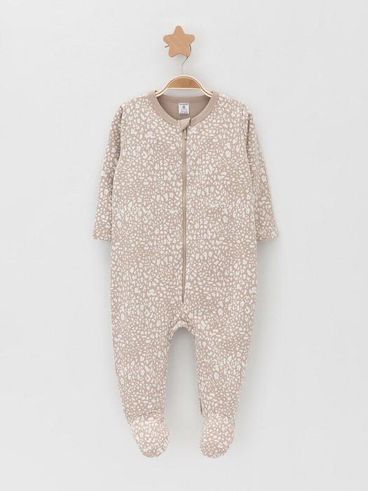 Комбинезон для новорождённых из тонкого футера с начёсом, произведённого из натурального хлопка. Застёгиваются спереди на молнию с мягкой защитой шеи и подбородка. В размере 56 на рукавах предусмотрены антицарапки, швы выполнены наружу.  Оригинальная набивка выполнена из стойких гипоаллергенных текстильных красителей. Все трикотажные полотна производятся в соответствии с нормами швейцарского сертификата ЭкоТекс.