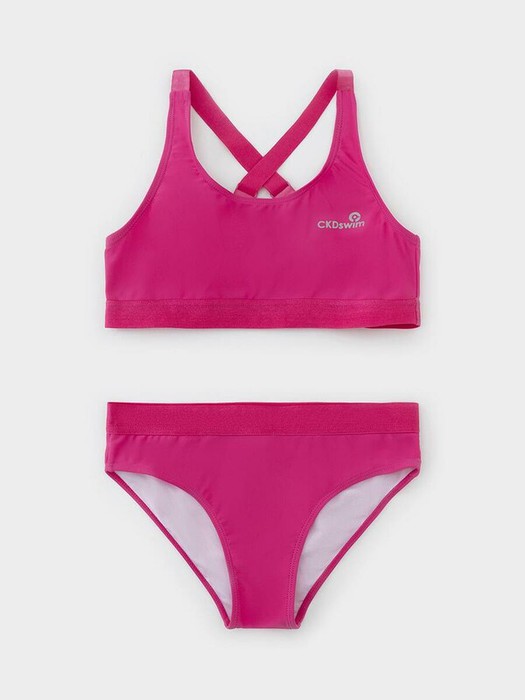 Раздельный купальник для девочки. Топ на регулируемых бретелях и плавки на эластичной резинке. Внутри подклад. Украшен принтом с логотипом.