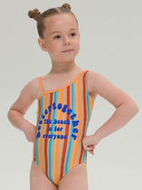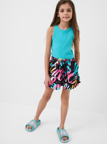 Слитный купальник на лямках для девочки. Украшен оборками. Оригинальная набивка выполнена из стойких гипоаллергенных красителей.