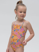 Слитный купальник на лямках для девочки. Украшен оборками. Внутри подклад. Оригинальная набивка выполнена из стойких гипоаллергенных красителей.