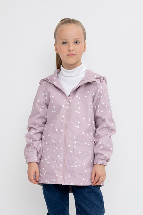 Ветровка для девочки из мембранной ткани с дополнительной тефлоновой обработкой.  Верхняя мембранная ткань 1000/1000 с тефлоновым покрытием отталкивает воду и грязь и обладает «дышащими» свойствами. Подкладка выполнена из 100% полиэстера - флиса. У изделия предусмотрена защита подбородка. Несъемный капюшон регулируется с помощью эластичного шнура со стопперами. Манжеты на резинке регулируются по ширине с помощью липучек. Во всех изделиях верхнего ассортимента для безопасности ребенка предусмотрены светоотражающие элементы.