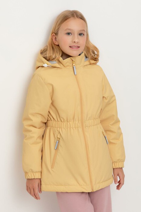 Демисезонная куртка для девочки с утеплителем SEE®: 120 г/м2. Выполнена из мембранной ткани с дополнительной тефлоновой обработкой. Данный вид обработки предохраняет изделие от загрязнения и лучше отводит влагу. Подклад из 100% полиэстера. У изделия предусмотрена защита подбородка. Несъемный капюшон регулируется с помощью эластичного шнура со стопперами. Низ рукавов и пояс изделия имеют эластичную резинку для лучшего прилегания. Во всех изделиях верхнего ассортимента для безопасности ребенка предусмотрены светоотражающие элементы.