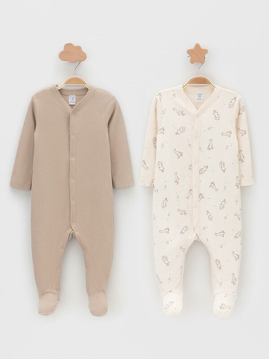 Комбинезоны для новорождённых из мягкого эластичного трикотажа, произведённого из натурального хлопка. В упаковке 2 штуки. Застёгиваются спереди на кнопки. В размере 56 на рукавах предусмотрены антицарапки, швы выполнены наружу. Все трикотажные полотна производятся в соответствии с нормами швейцарского сертификата ЭкоТекс.