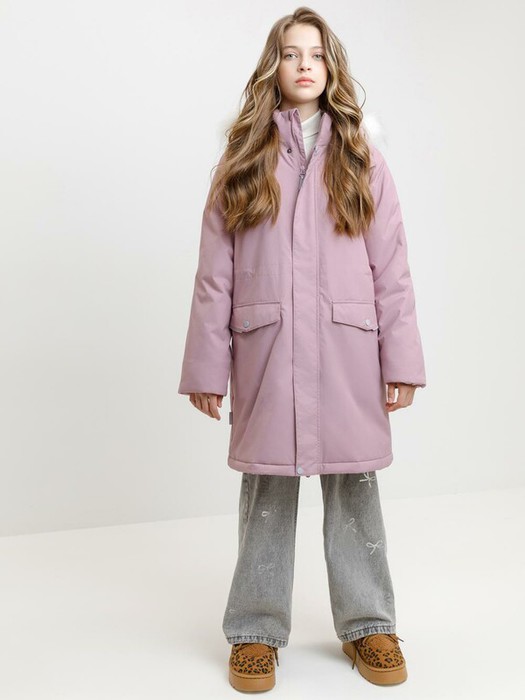 Зимнее пальто для девочки с утеплителем SEE®: 250 г/м2. Выполнено из мембранной ткани с дополнительной тефлоновой обработкой, которая предохраняет изделие от загрязнений и отталкивает влагу. Подклад выполнен из 100% полиэстера Tricot. Пальто застёгивается на молнию, предусмотрена защита подбородка. Съёмный капюшон на кнопках и липучках имеет отстёгивающийся искусственный мех. На рукавах мягкие манжеты. По бокам два кармана с клапанами, внутри карман на молнии. По талии эластичная утяжка со стопперами для регулировки ширины пальто. Во всех изделиях верхнего ассортимента для безопасности ребёнка предусмотрены светоотражающие элементы.