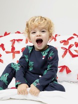 Трикотажная пижама из натурального хлопка.  Джемпер с длинными втачными рукавами и брюки с эластичной резинкой в поясе. Отлично подойдёт для создания праздничных образов или в качестве подарка малышу на Новый год и Рождество. Джемпер застёгивается на кнопки. По низу брюк мягкие манжеты. Оригинальная набивка и принт выполнены из стойких текстильных гипоаллергенных красителей. Изделие сохраняет цвет и форму после многократных стирок. Все трикотажные полотна производятся в соответствии с нормами швейцарского сертификата ЭкоТекс.