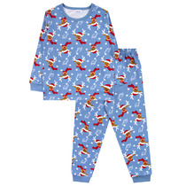 Пижама для мальчика из натурального хлопка. Джемпер с длинными втачными рукавами и брюки с эластичной резинкой в поясе. Мягкие манжеты по низу брюк сделаны из материала в рубчик. Оригинальная набивка и принт выполнены из стойких текстильных гипоаллергенных красителей. Изделие сохраняет цвет и форму после многократных стирок. Все трикотажные полотна производятся в соответствии с нормами швейцарского сертификата ЭкоТекс.
