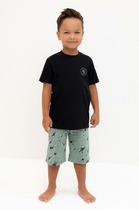Трикотажная пижама из натурального хлопка. Футболка с короткими втачными рукавами изготовлена из эластичного трикотажа в рубчик. Шорты с эластичной резинкой в поясе выполнены из гладкого трикотажа супрем. Оригинальная набивка выполнена из стойких текстильных гипоаллергенных красителей. Изделие сохраняет цвет и форму после многократных стирок. Все трикотажные полотна производятся в соответсвии с нормами швейцарского сертификата ЭкоТекс.