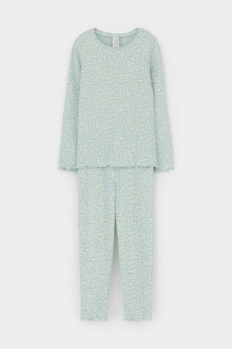 24.03 Crockid пижама для дев К 1618-1/голубая дымка,летние листья