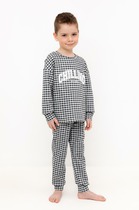 Трикотажная пижама в рубчик из натурального хлопка. Джемпер с длинными втачными рукавами и лосины с эластичной резинкой в поясе. Оригинальная набивка выполнена из стойких текстильных гипоаллергенных красителей. Изделие сохраняет цвет и форму после многократных стирок. Все трикотажные полотна производятся в соответсвии с нормами швейцарского сертификата ЭкоТекс.