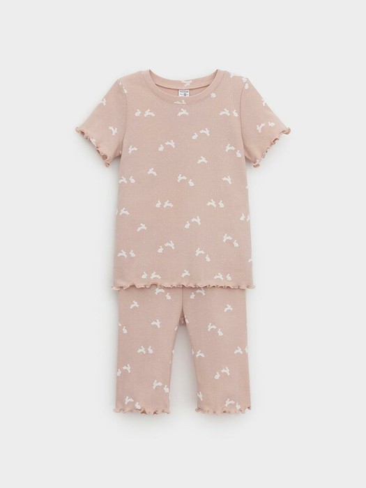 Трикотажная пижама в рубчик из натурального хлопка. Футболка с короткими втачными рукавами и шорты с эластичной резинкой в поясе. Оригинальная набивка выполнена из стойких текстильных гипоаллергенных красителей. Изделие сохраняет цвет и форму после многократных стирок. Все трикотажные полотна производятся в соответсвии с нормами швейцарского сертификата ЭкоТекс.
