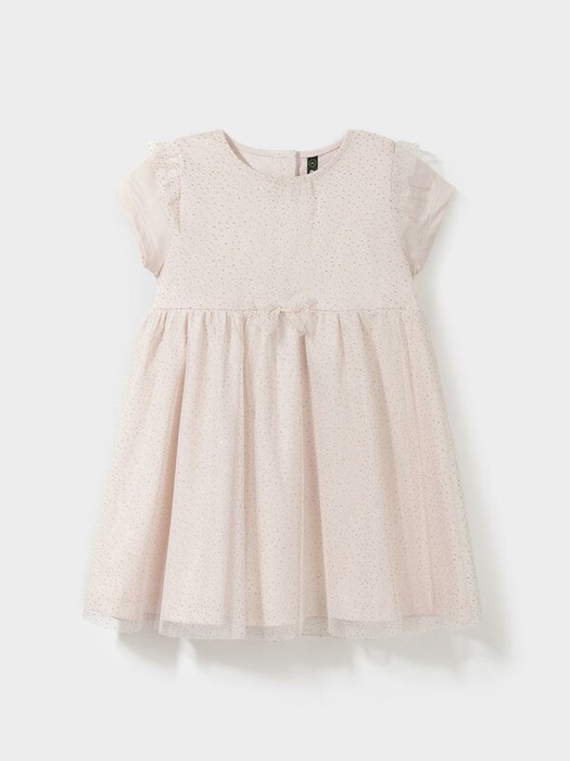 Нарядное платье с воздушными крылышками для девочки. Изготовлено из высококачественного хлопкового трикотажа супрем. Поверх трикотажа лёгкая сетка. Для удобства одевания на спинке расположена застёжка на кнопки. Спереди украшено декоративным бантиком. Изделие сохраняет цвет и форму после многократных стирок.