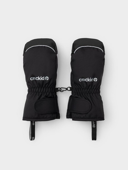 Детские утеплённые рукавицы из однотонной мембранной ткани со вставками из искусственной кожи. Удлинённые манжеты на молнии. Мягкий подклад из флиса. Пластиковый карабин для скрепления рукавиц между собой. Светоотражающие элементы.