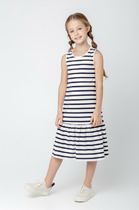 Сарафан на лямках из капитония с двумя накладными карманами. Капитоний – это стёганое трикотажное полотно с утеплителем из полиэстеровой нити. Лямки застегиваются на пуговицы. Все трикотажные полотна производятся в соответствии с нормами швейцарского сертификата ЭкоТекс.