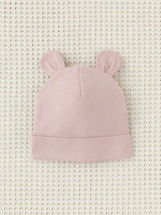 Шапка с отворотом для новорождённых из мягкого эластичного трикотажа интерлок, произведённого из натурального хлопка. Украшена декоративными ушками. Все трикотажные полотна производятся в соответствии с нормами Швейцарского сертификата ЭкоТекс.