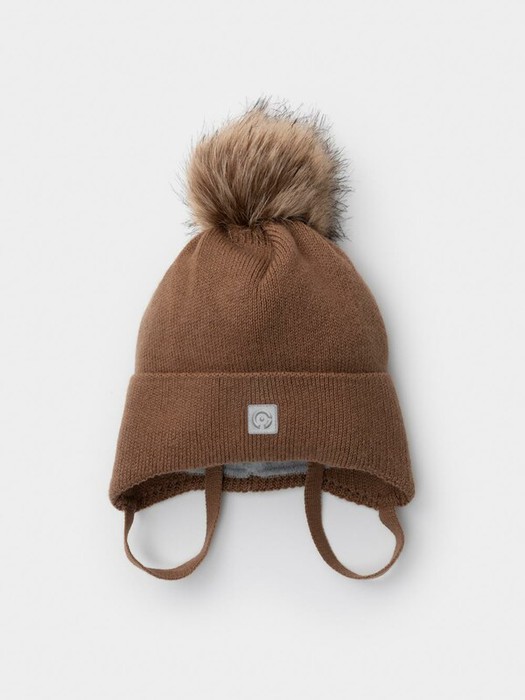 Шапка из полушерсти на завязках. Подклад из флиса. Полностью закрывает голову, уши и шею, защищая ребёнка от холодного воздуха и ветра. На макушке помпон. Изделие сохраняет форму и стойкий цвет после многочисленных стирок.
