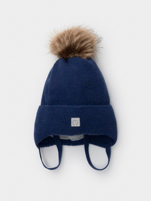 Шапка из полушерсти на завязках. Подклад из флиса. Полностью закрывает голову, уши и шею, защищая ребёнка от холодного воздуха и ветра. На макушке помпон. Изделие сохраняет форму и стойкий цвет после многочисленных стирок.