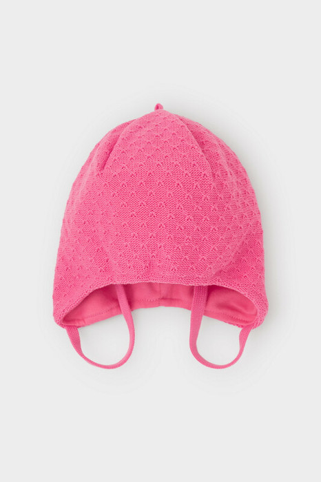 Демисезонная шапка для девочки из мягкой гипоаллергенной акриловой пряжи. Хлопковый подклад выполнен из трикотажного полотна интерлок. Комфортное прилегание, высококачественные материалы обеспечивают защиту от холода и хороший теплообмен.