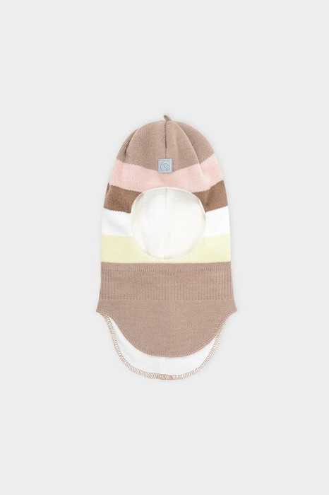 Шапка-шлем с мягким подкладом из интерлока для девочки. Украшена цветными полосками. На макушке рулик. Удобна для самостоятельного одевания и полностью закрывает голову, уши и шею, защищая ребёнка от холодного воздуха и ветра. Спереди прикреплён светоотражатель, который обеспечивает дополнительную безопасность в тёмное время суток.