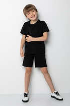 Легкие трикотажные шорты для мальчика из высококачественного хлопка. Эластичный пояс регулируется при помощи шнурка.