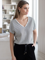 Vilatte Футболка с цельнокроеным рукавом D49.069 белый-черный