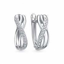 Серьги из серебра с фианитами родированные