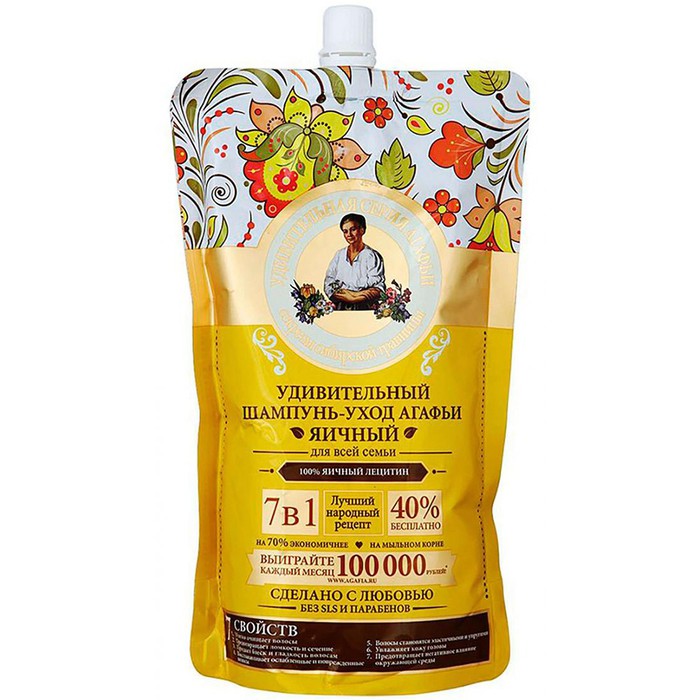 Шампунь приготовлен на основе 100% яичного лецитина и обладает 7 свойствами: