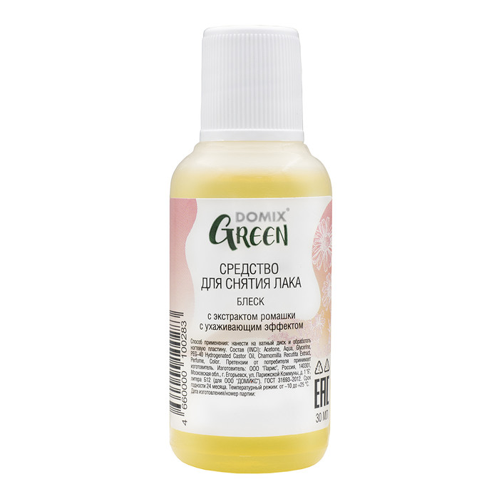 Совместные покупки Уфа Косметика и парфюмерия Прочее — Domix Green Блеск 30мл пл Средство д/сн.лака с экстр.ромашки с ухажив.эффектом