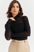 Джемпер прямого свободного кроя,выполнен из трикотажного полотна черного цвета. Характеристики: прямой крой, овальный вырез горловины, спинка цельнокроеная, по переду брендированная нашивка, рукав спущен. Длина по спинке 41 см, длина рукава от края горловины 76см.
