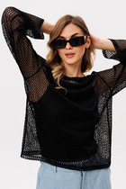 Блузка выполнена из сетки с рисунком. Блузка прямого силуэта, длиной выше линии бедер. Перед и спинка цельные. Горловина переда и спинка формы "лодочка". Плечевой шов удлинен. Рукав одношовный широкий. Горловина обработана окантовкой из основной ткани.Топ в комплект не входит, можно приобрести отдельно арт. 2855.