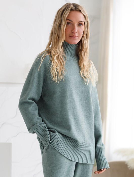 Состав: 52%ПАН (акрил) 33%ПЭ 8%ПУ 7%Кашемир Плотность: 7 GG Размер товара на первом фото: 42Джемпер с воротом стойка выполнен из мягкой меланжевой пряжи с кашемиром. Модель свободного силуэта с рукавом реглан будет стильно сочетается с брюками и джинсами. Мягкая пряжа очень приятная к телу, поддержит комфорт на протяжении всего дня, при этом не перегревая. Сочетается в костюме с брюками D38.013, D38.012 и юбкой D36.016