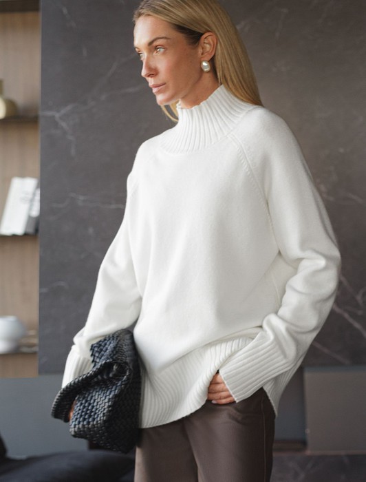 Состав: 52%ПАН (акрил) 33%ПЭ 8%ПУ 7%Кашемир Плотность: 7 GG Размер товара на первом фото: 42Джемпер с воротом стойка выполнен из мягкой пряжи с кашемиром. Модель свободного силуэта с рукавом реглан будет стильно сочетается с брюками и джинсами. Мягкая пряжа очень приятная к телу, поддержит комфорт на протяжении всего дня, при этом не перегревая. Сочетается в костюме с брюками D38.013, D38.012 и юбкой D36.016